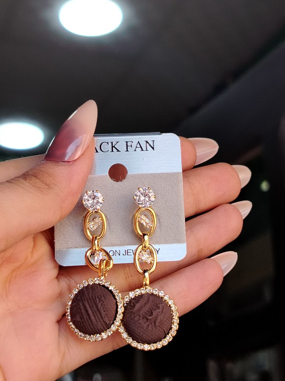 💎 اللون: ذهبي × بني داكن + حجر لامع.