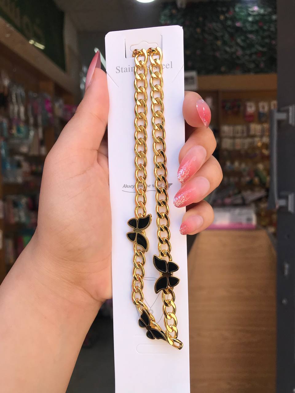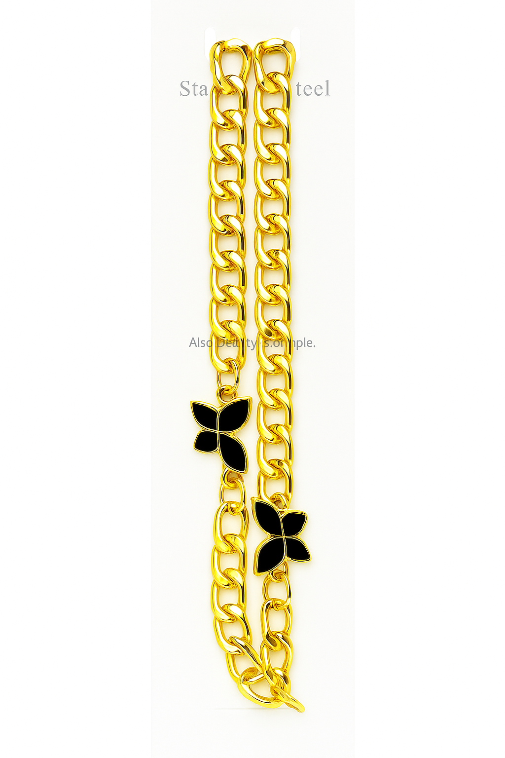 أبرزي أنوثتك مع سلسلة الفراشات السوداء بتصميم ذهبي لامع يجمع بين الفخامة والنعومة.