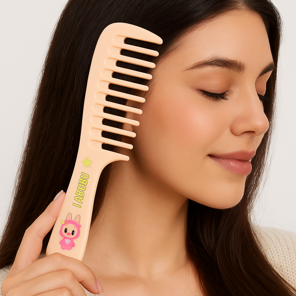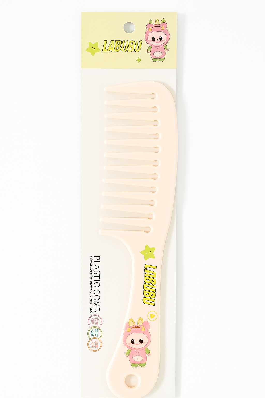 مشط بلاستيك واسع الأسنان بتصميم كرتوني لطيف من LABUBU، مثالي لتسريح شعر الأطفال بلطف وبدون شد أو ألم.